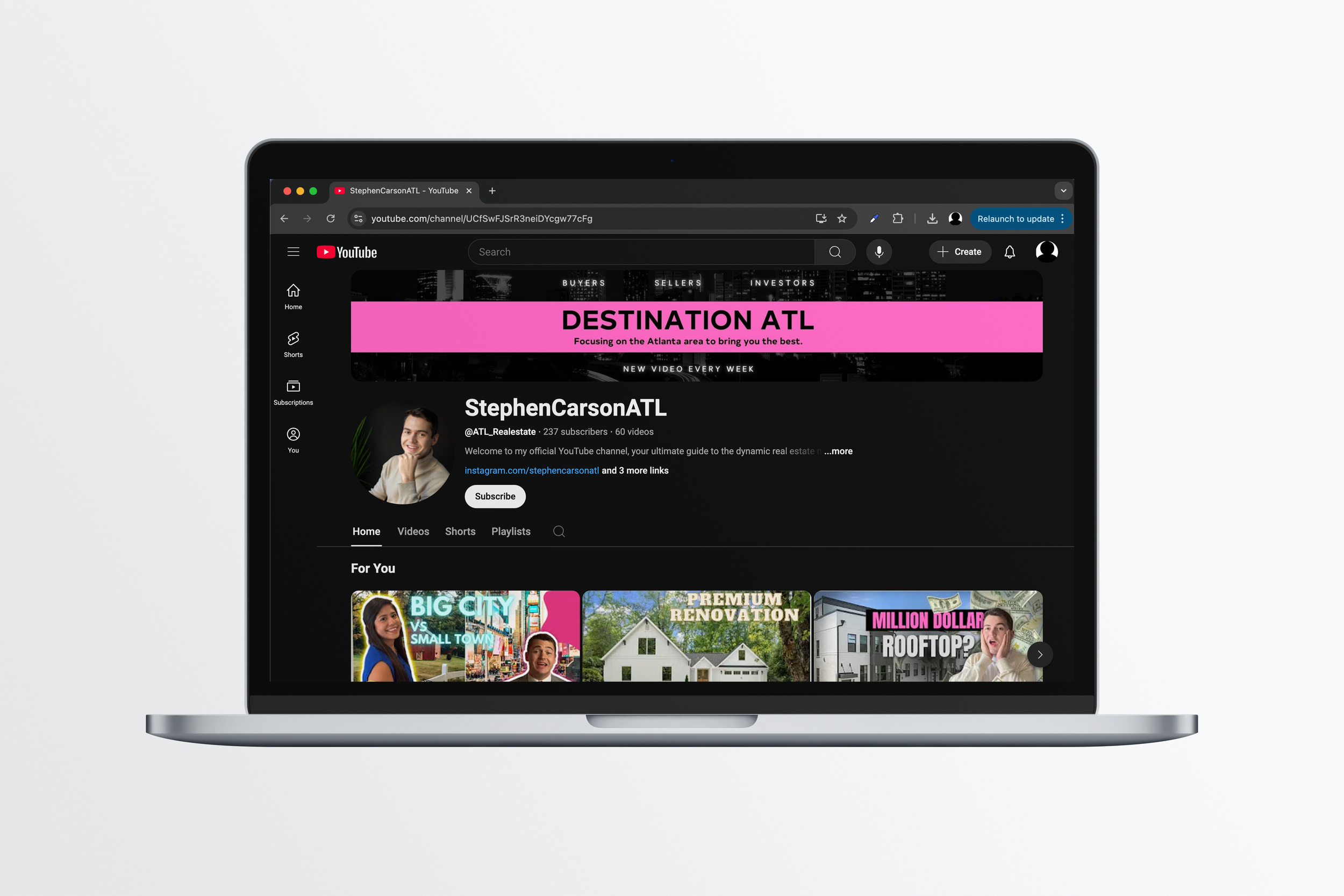 Stephen’s focus is his Youtube Channel where he posts insights into the Atlanta housing market, while giving helpful advice to those curious about the area. The goal was to create a banner for his channel that would encompass his pre-existing brand while elevating it to fit his current target audience.